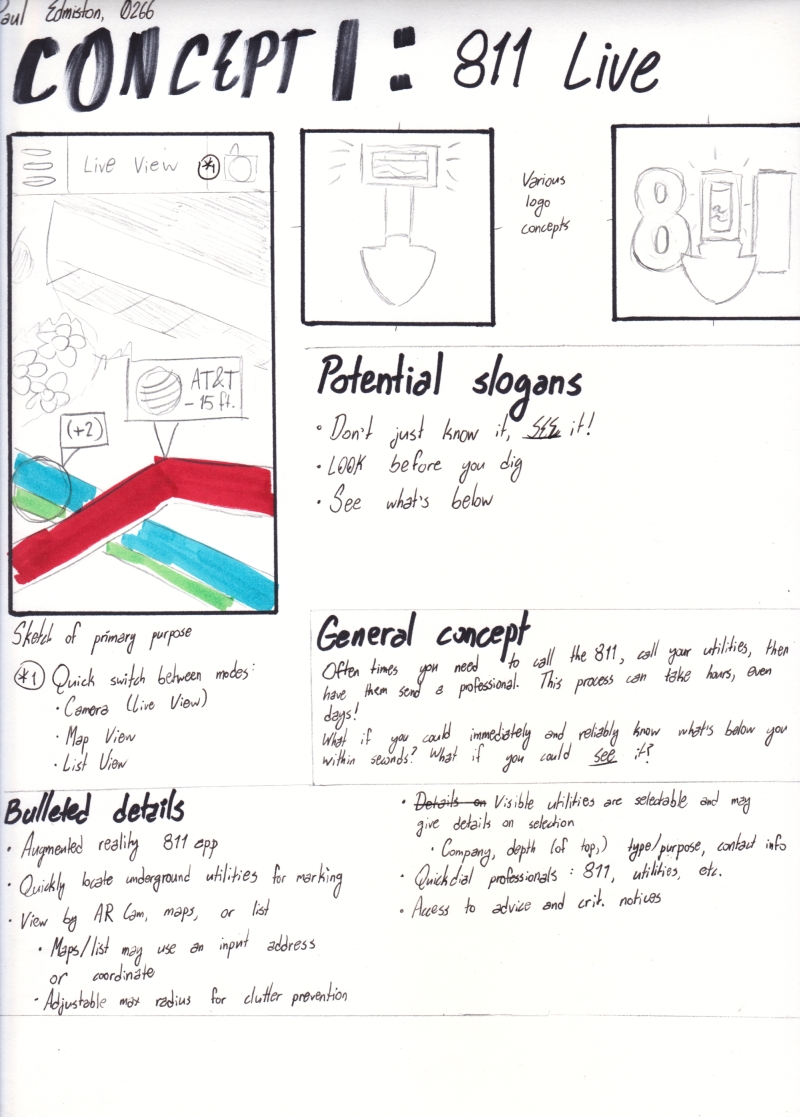 The first concept summary of 811 Live. My other ideas for a product or service included a modular backpacking system and a chain of locker storage units catering to commuters and cyclists.